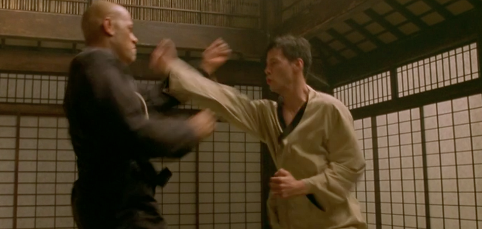 Next stage of preparing Neo for his “mission” to “save humanity” is combat training, a process of accelerated “relearning” and “downloading” real knowledge.